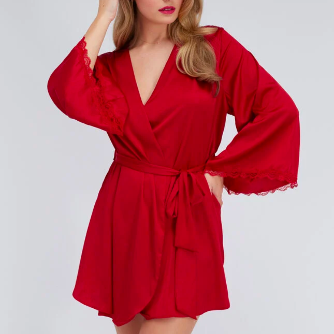 Luxury starts at bedtime! Make it a Valentine's Day to remember with this beautiful satin robe from Boux Avenue. Crafted from soft liquid satin with delicate floral lace detailing, this gorgeous gown is sure to elevate your evenings.