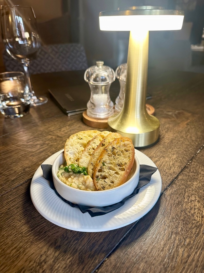 Complimentary pre-starter of homemade hummus and garlic crostini Image: Confidentials