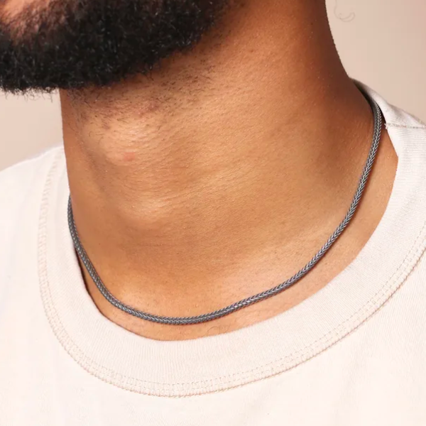 Help Dad build up his jewellery collection with this sleek foxtail chain, made of solid sterling silver. With an oxidised effect to the surface, this polished chain has a distressed feel and can be worn as an everyday piece.