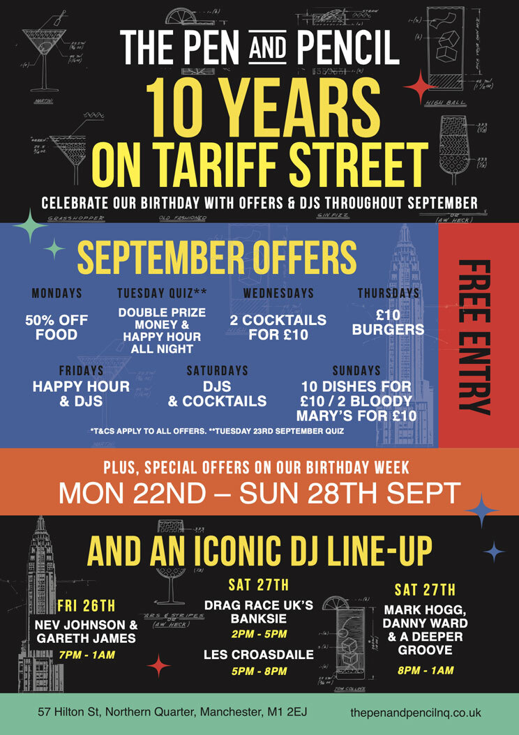 To celebrate a decade in the Northern Quarter we have offers every single day in September plus a special birthday week of even more deals and dancing.